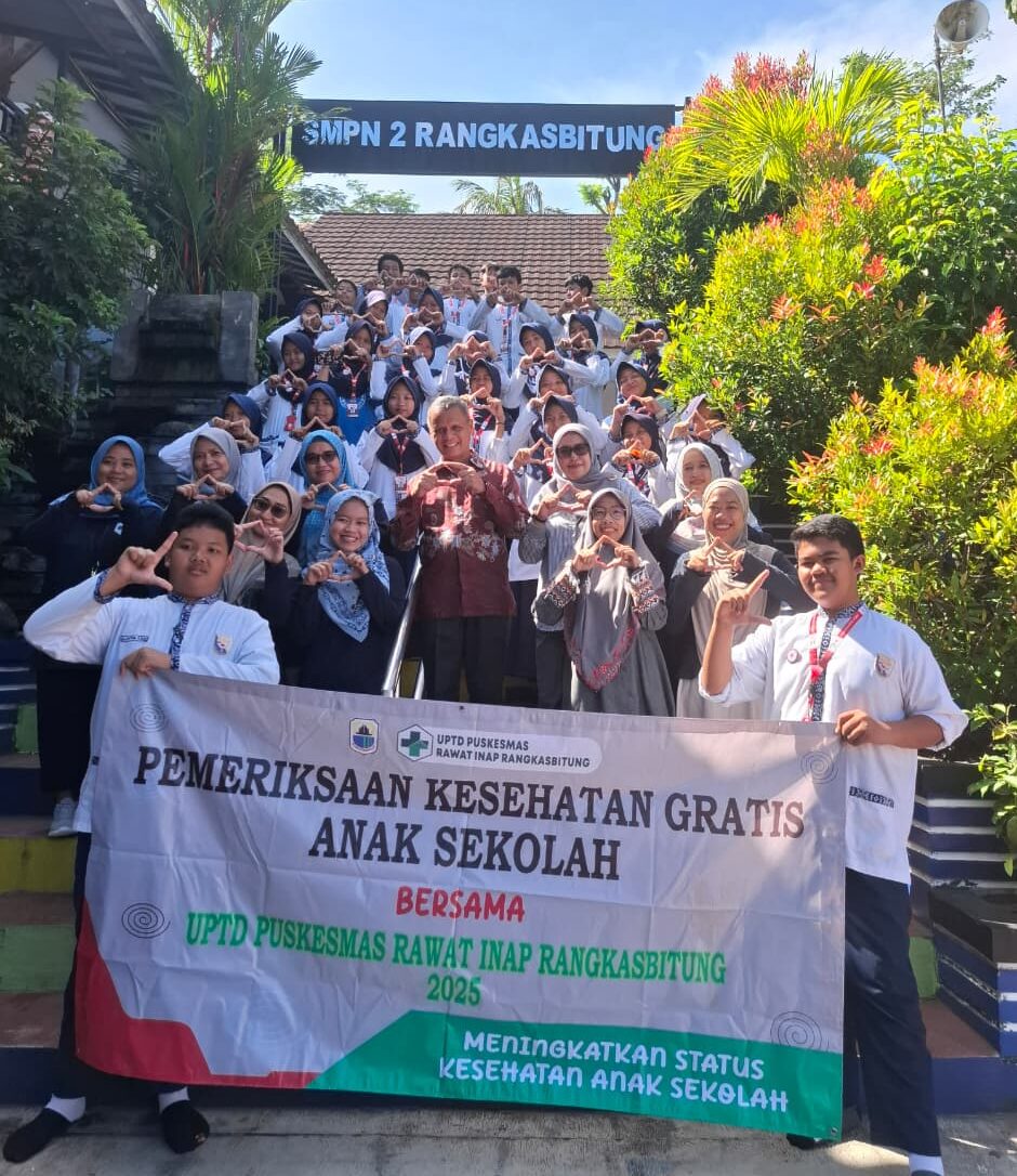 Rangkasbitung — Dalam rangka mendukung program sekolah sehat dan memastikan kesiapan belajar peserta didik baru, SMP Negeri 2 Rangkasbitung bekerja sama dengan Puskesmas Rangkasbitung melaksanakan Pemeriksaan Kesehatan Gratis (PKG) bagi siswa kelas 7 Tahun Pelajaran 2025/2026.