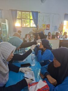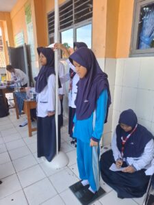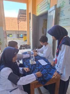 Tenaga kesehatan dari Puskesmas Rangkasbitung juga memberikan penyuluhan mengenai pentingnya menjaga pola hidup sehat dan pemeriksaan berkala sebagai upaya pencegahan penyakit. Hasil pemeriksaan menunjukkan beberapa siswa mengalami gangguan ringan seperti anemia dan masalah gigi, yang kemudian akan dipantau secara berkala.