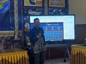 Pada sesi pertama, para guru dibimbing oleh Ibu Rini Astuti untuk mengenal dan memahami penggunaan papan interaktif digital sebagai media pembelajaran yang lebih menarik dan interaktif. Melalui pendampingan langsung, guru-guru belajar bagaimana mengoptimalkan fitur-fitur pada papan interaktif digital sehingga materi dapat disajikan secara lebih hidup, visual, dan mudah dipahami peserta didik.